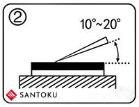 Posizionare la pietra di affilatura sulla piattaforma e il coltello deve essere ad un angolo di 10 ~ 30 gradi.