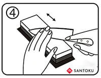 Innanzitutto, affinare la lama mediante macinazione ruvida a 1000, grana per 5-10 minuti.